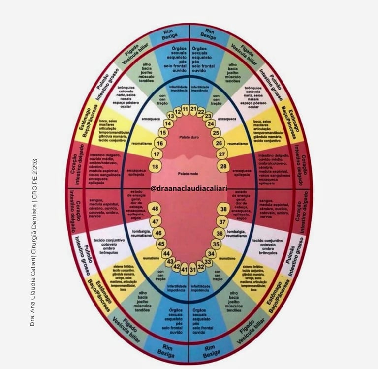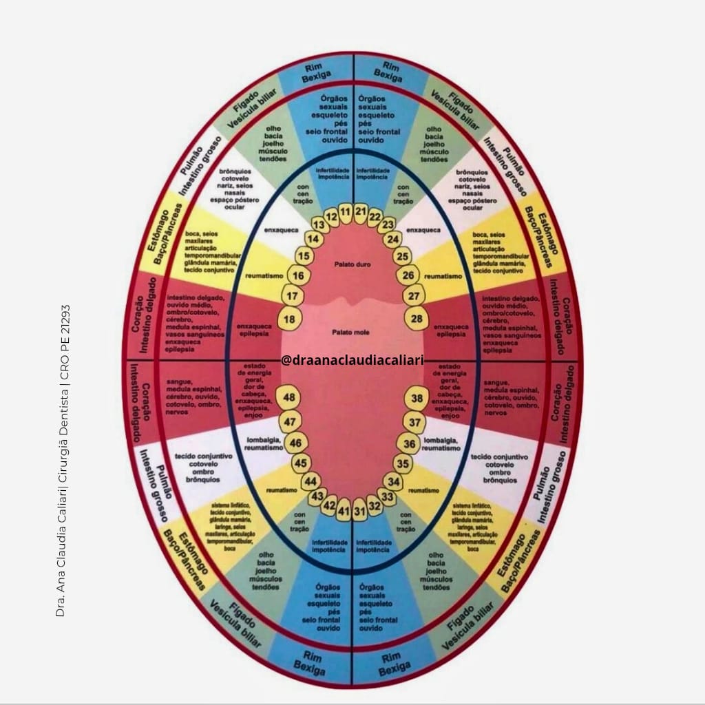 Os doutores Voll e Kramer, da Sociedade Internacional de Eletroacupuntura na Alemanha, e seu colega dentista, Dr. Adler, identificaram quais partes do corpo estão relacionadas a cada um dos 32 dentes permanentes. Seu trabalho demonstrou uma conexão entre os sintomas e doenças dos pacientes e os dentes que sofreram alterações de desenvolvimento, infecciosas, traumáticas ou degenerativas.